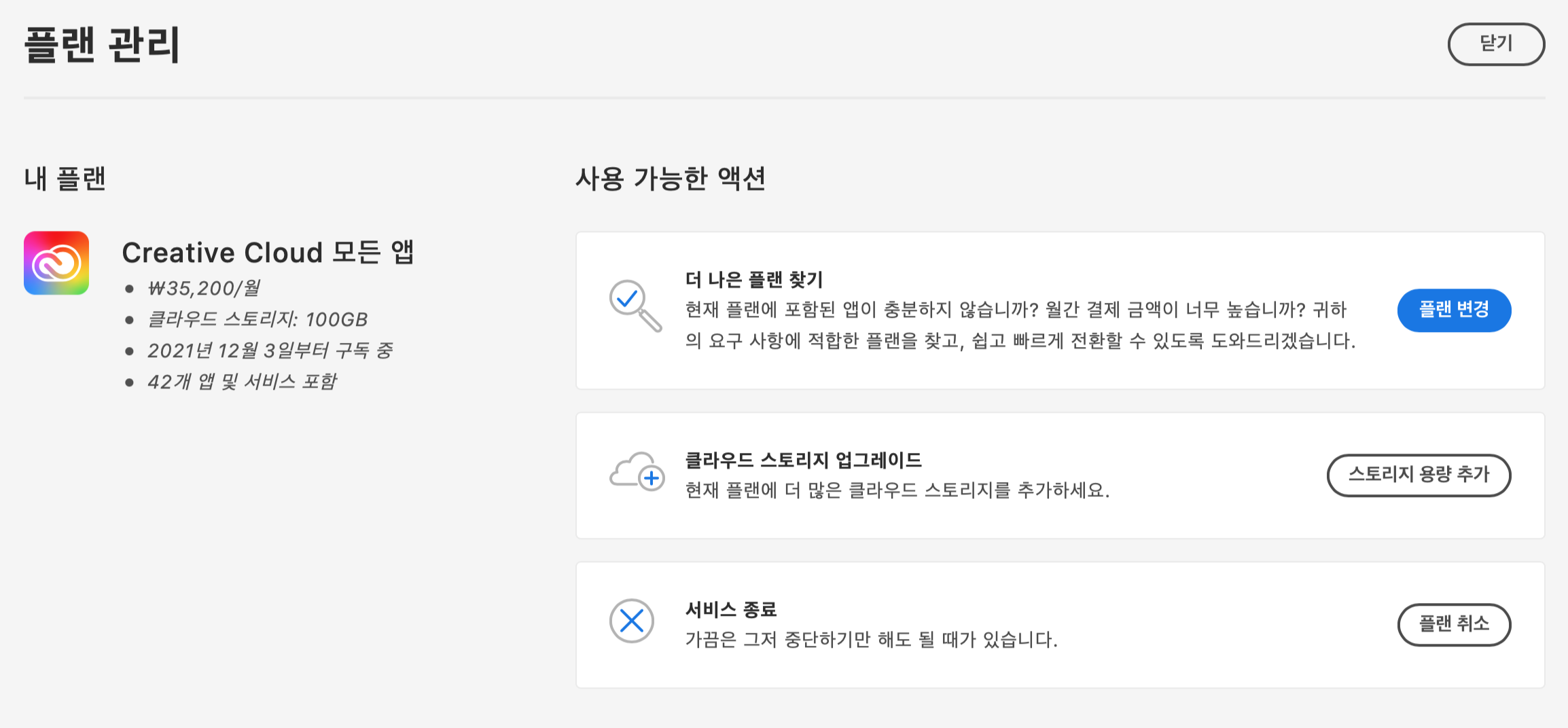 바로 종전의 결제를 취소하고 플랜을 변경해서 구매 완료!