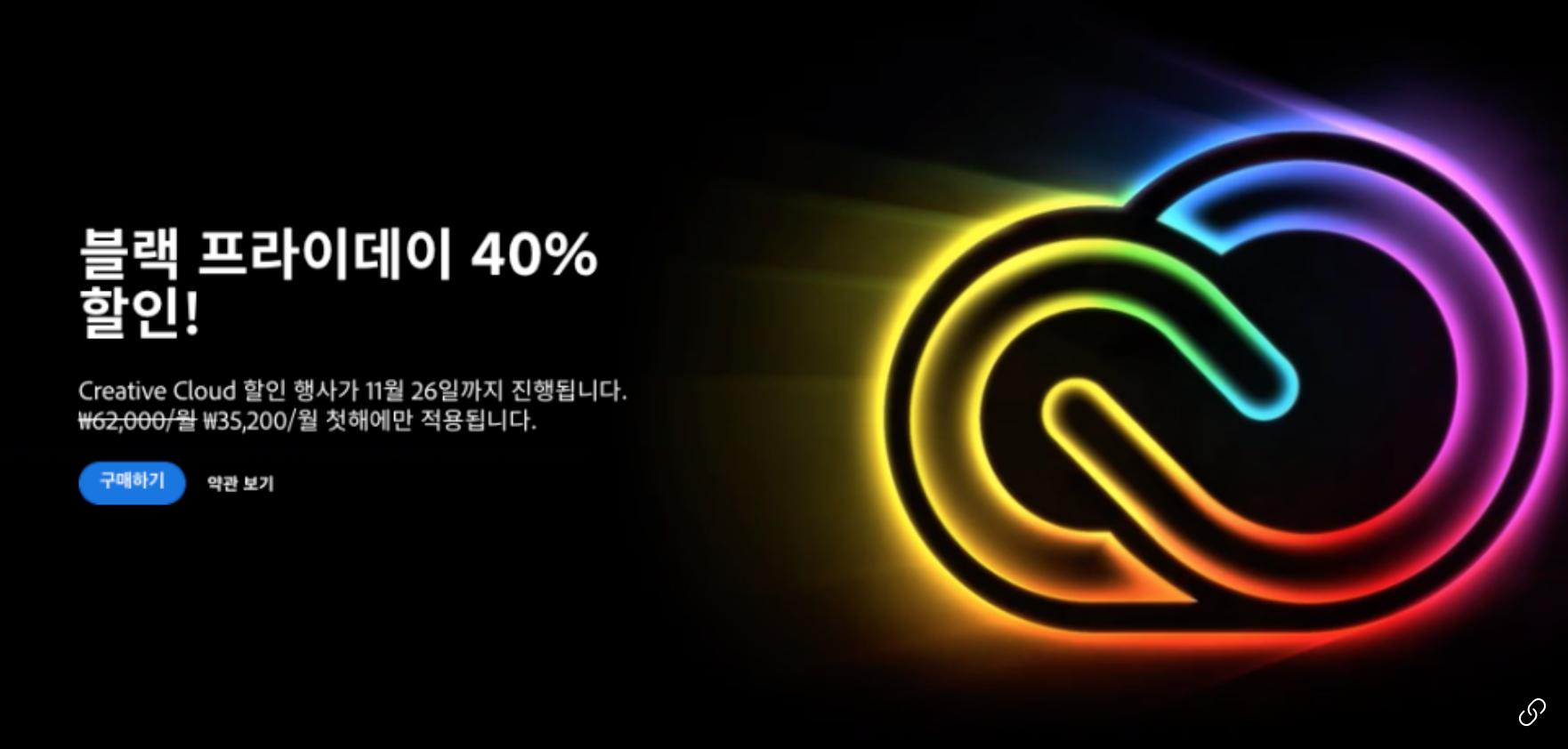 세일전의 가격은 Adobe Creative Cloud 모든 앱을 사용할경우 월 62,000원인데,