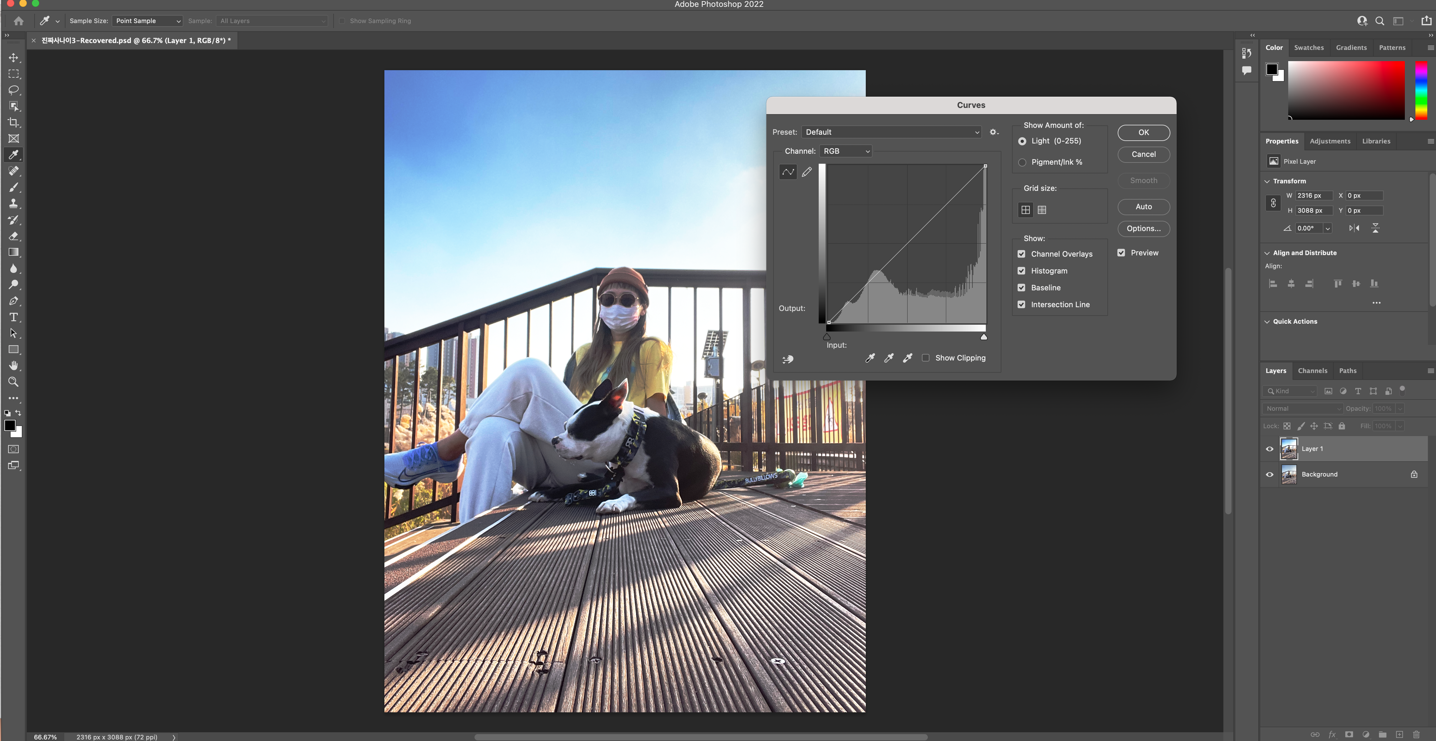 포토샵 CC 이용해서 팝스랑 찍은 사진 보정중
