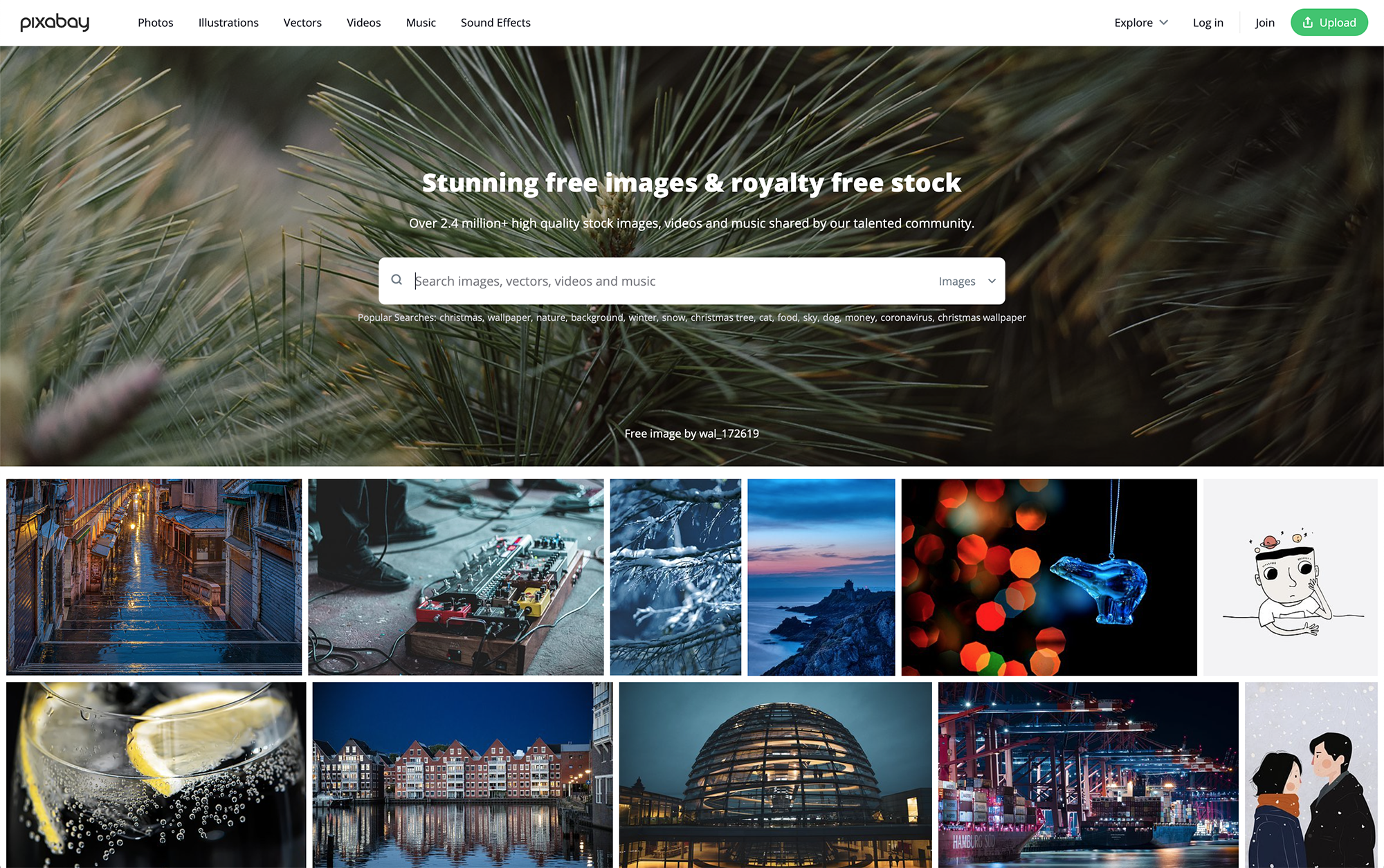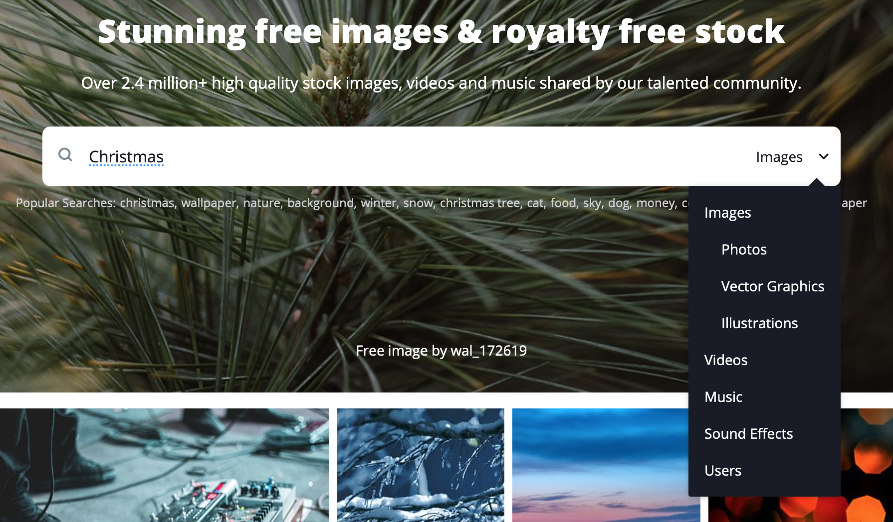 Pixabay는 이미지 뿐만 아니라 영상이나 음악도 사용가능한것들이 있어 기능적으로 만족도 높은 사이트입니다.