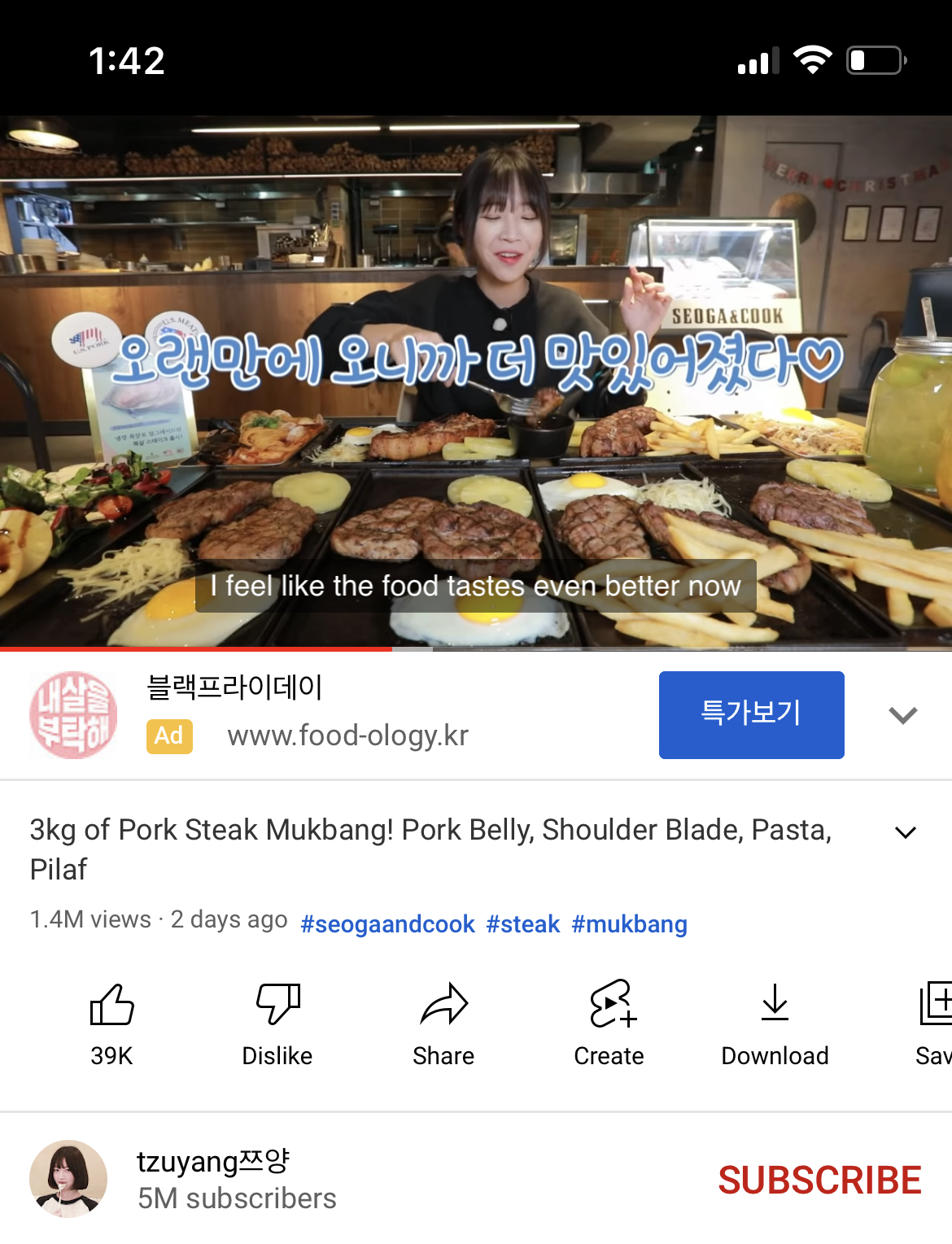 어제 잠들기 전에 쯔양 서가앤쿡 먹방을 봤는데